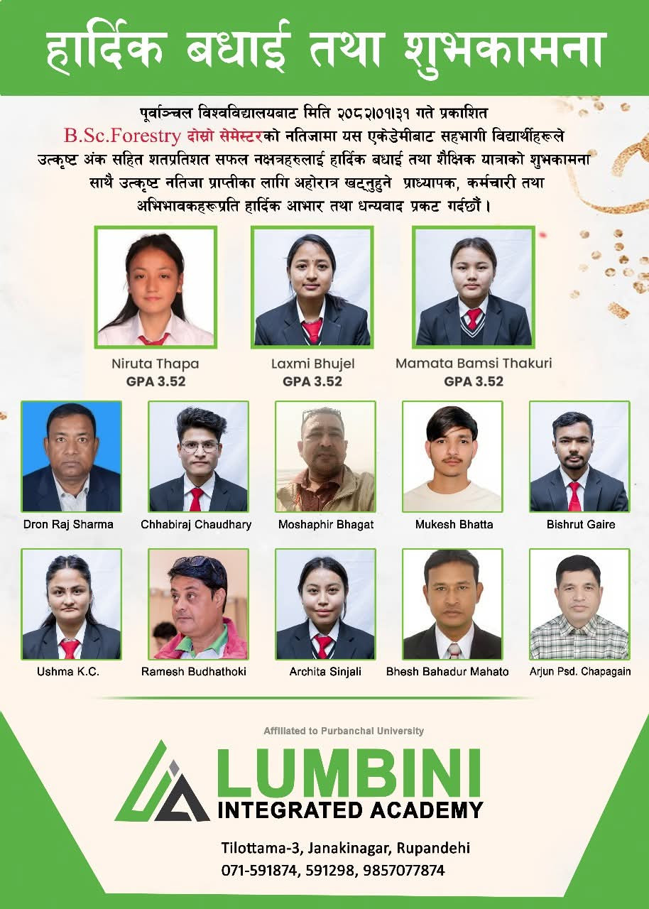 नेपाल बार एशोसियनका नवनिर्वाचित पदाधिकारीलाई लुम्बिनी इन्टिग्रेटेड एकेडेमीको बधाई